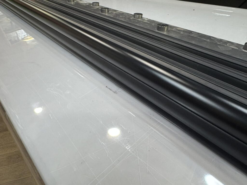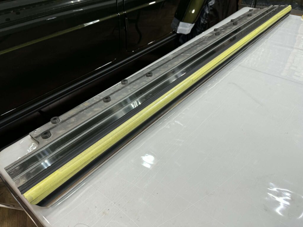 ボディのサイドを走るモール部分。 細いパーツですが、ここがブラックアウトされることで、サイドビューに一本筋が通ったような「塊感」が出てきます。オーナー様の「ここも!」というこだわりが光るポイントですね。
