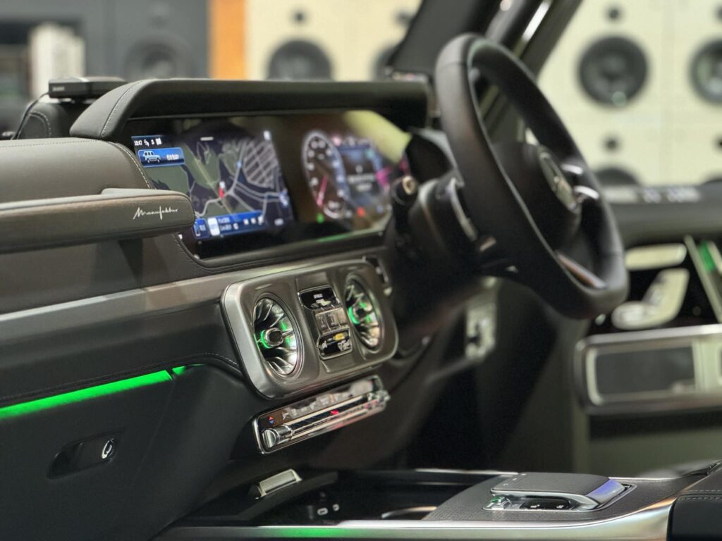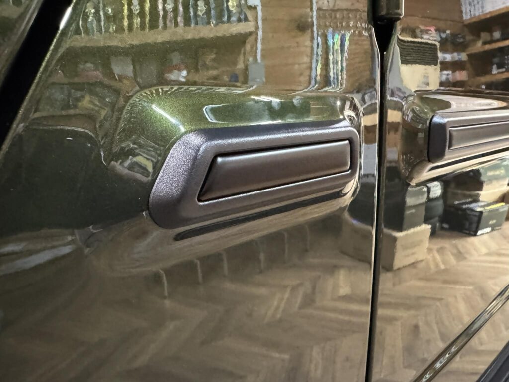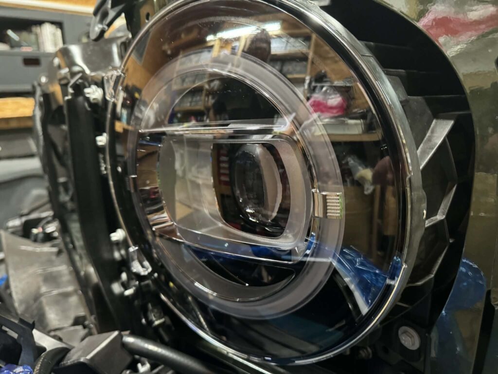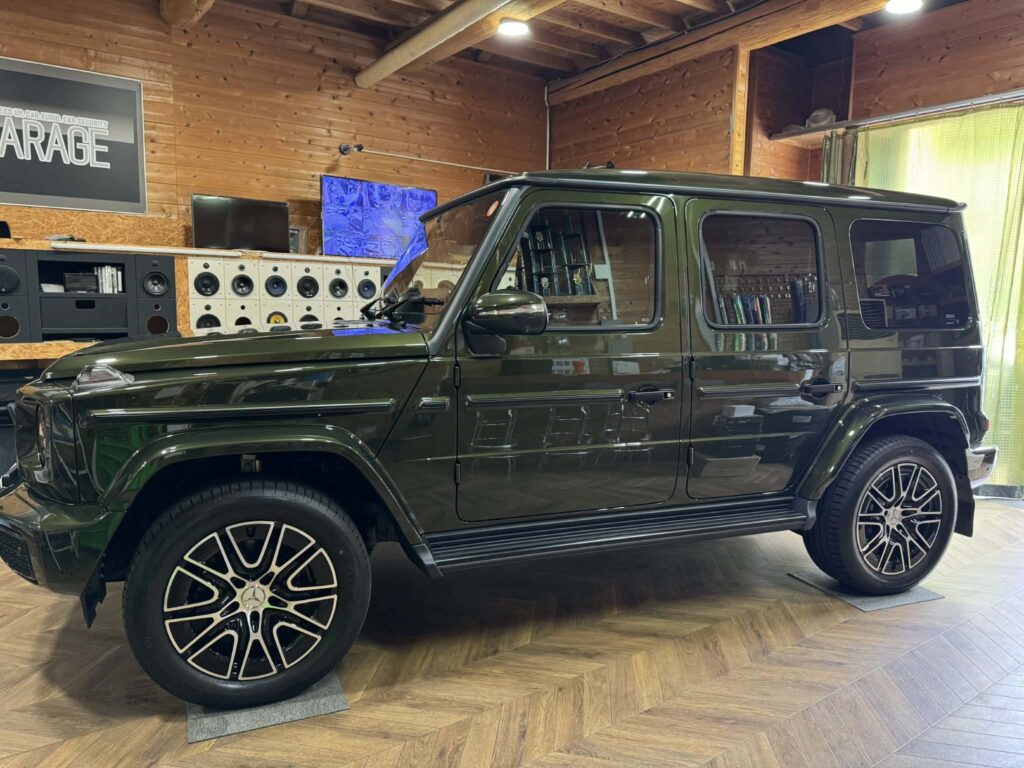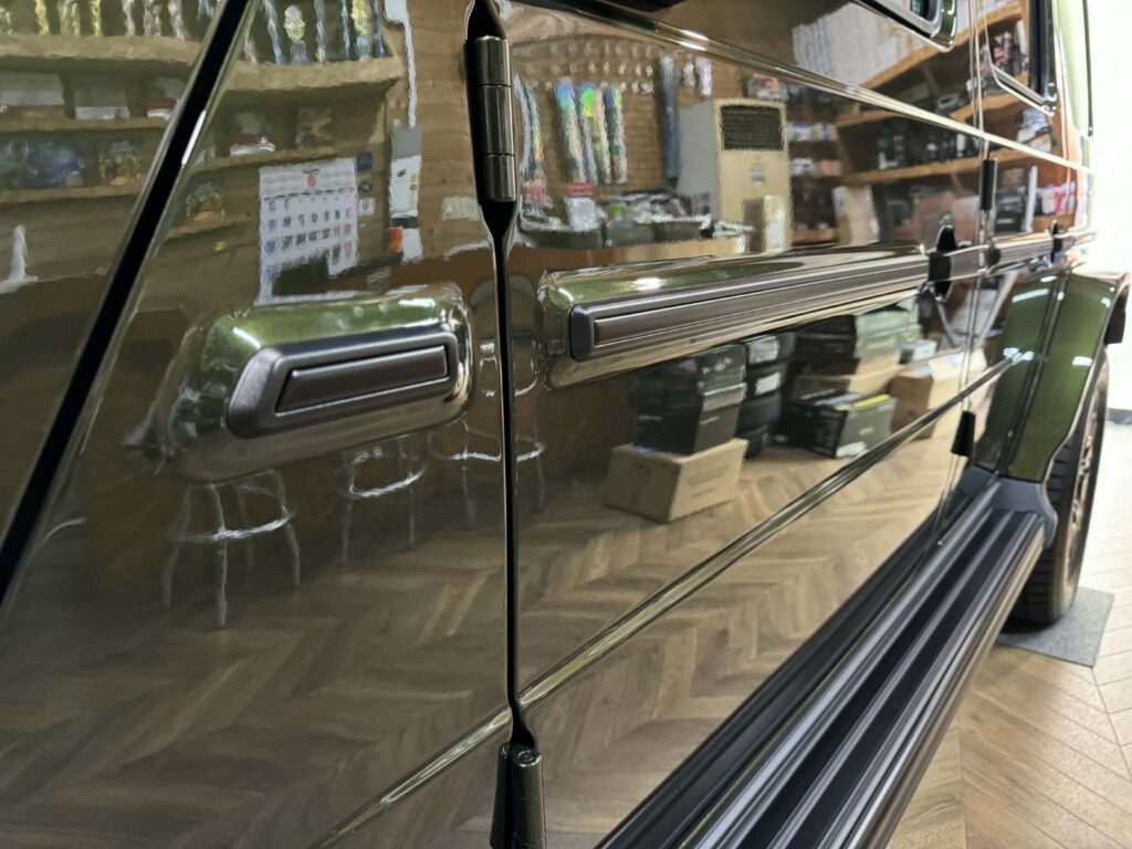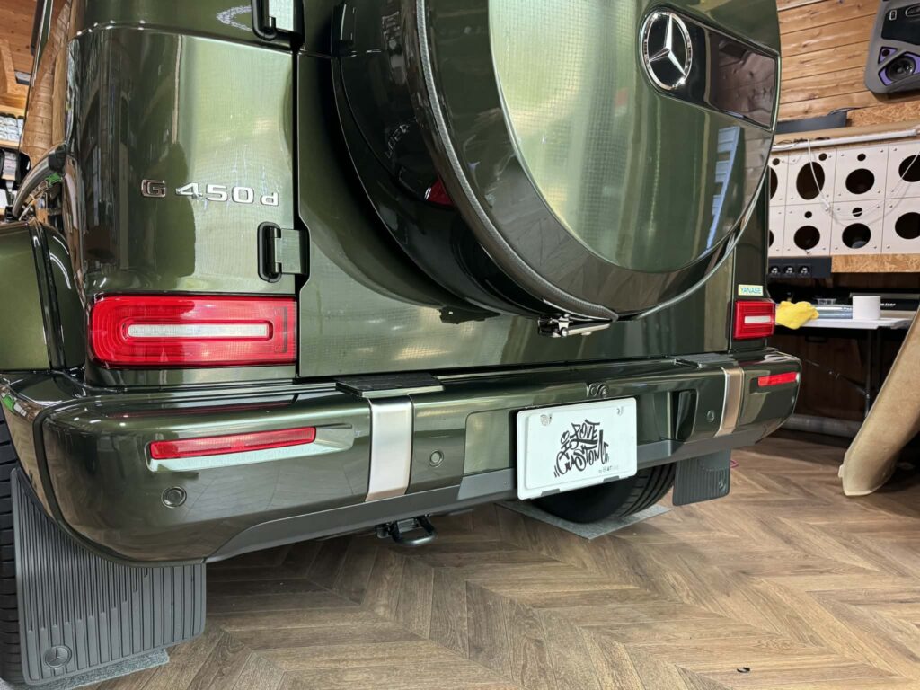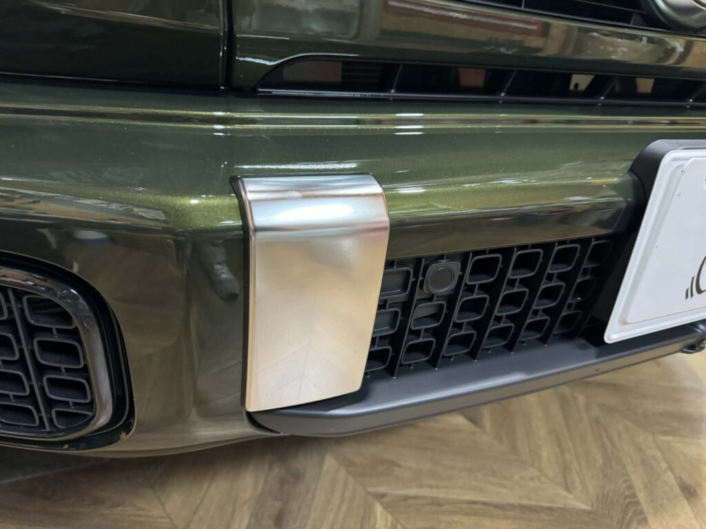 今回ご紹介するのはメルセデス・ベンツ G450dのご紹介です。 ボディカラーは深みのある渋いグリーン。このままでも十分に素敵な一台ですが、オーナー様のこだわりで「各部のクロームパーツをナイトパッケージ仕様に…」とのご相談をいただきました。ありがとうございます。