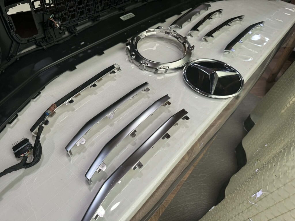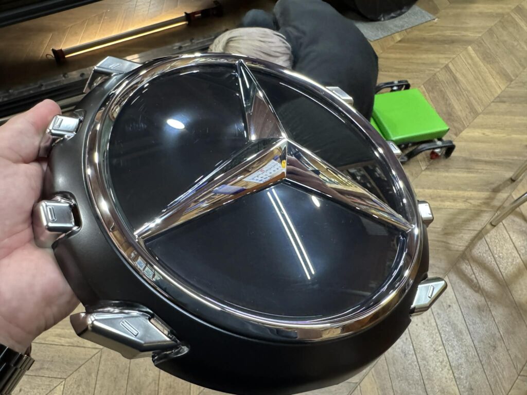 まずは作業前の状態です。 シルバーの加飾が各所に配置され、これはこれでベンツらしい高級感がありますが、今回はここを「引き算」の美学でブラッシュアップしていきます。