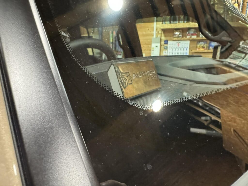 これに加えて、ダッシュボードの上にはオーサースキャナーを設置。 夜間に青く点滅する光が「この車は対策済みだぞ」と強烈にアピールし、犯人を未然に遠ざけます!