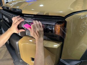 これに対し、プロテクションフィルムのヘッドライトへの施工は約4万円、ドアカップなどは2万〜3万円から可能です。