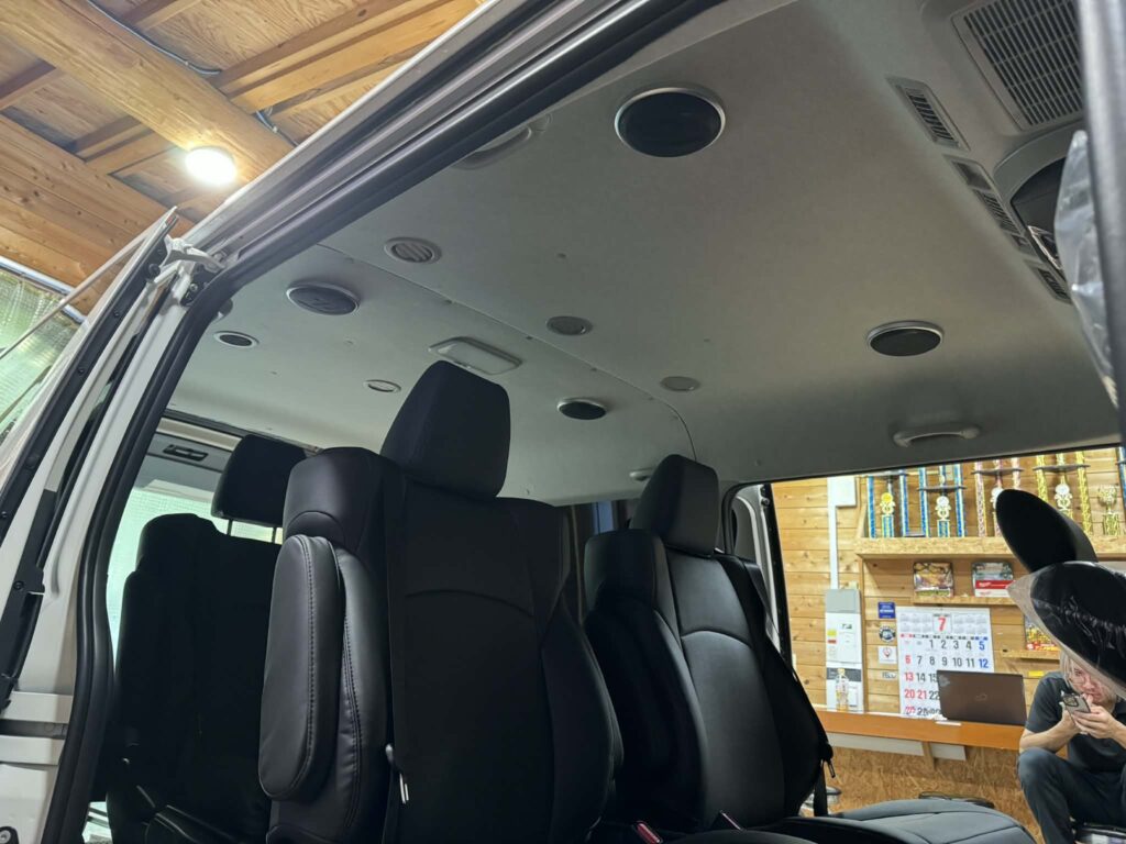 ハイエース乗りなら誰もが抱える悩み。それは「リアシートまで音が届かない問題」。 車体が長すぎて、後ろに座ると前からの音がボヤけて聞こえにくいんですよね。