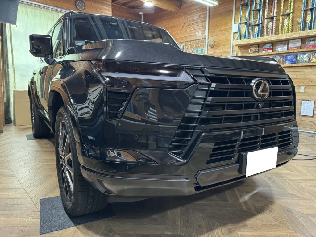 タフなオフローダーとしての性能と、レクサスならではのラグジュアリーさが融合したこのモデル。ボディーカラーの「黒」がその力強さをさらに引き立てていますね。 しかし、これだけの価値がある車となれば、当然「守り」と「快適さ」へのこだわりも、オーナー様にとっては譲れないポイントになります。今回は特に「守り」に関して、現在考えうる最強の布陣で臨みました。ありがとうございます。