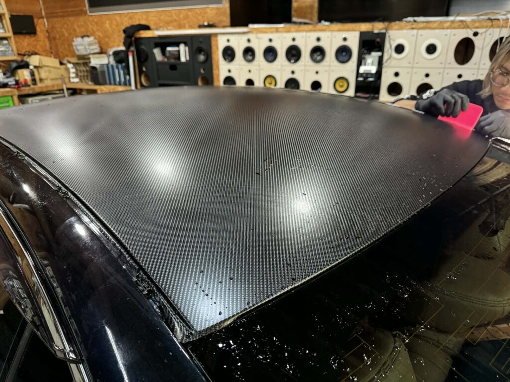 モールとの境目も違和感なく、まるで最初からカーボンルーフだったかのような純正クオリティーな仕上がりになりました。
