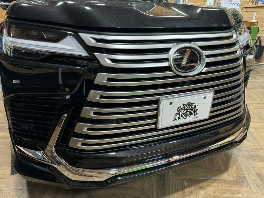 愛媛県からご来店‼シルバーを消し去り、漆黒の威圧感を!LX600フロントグリルをブラックアウト‼
