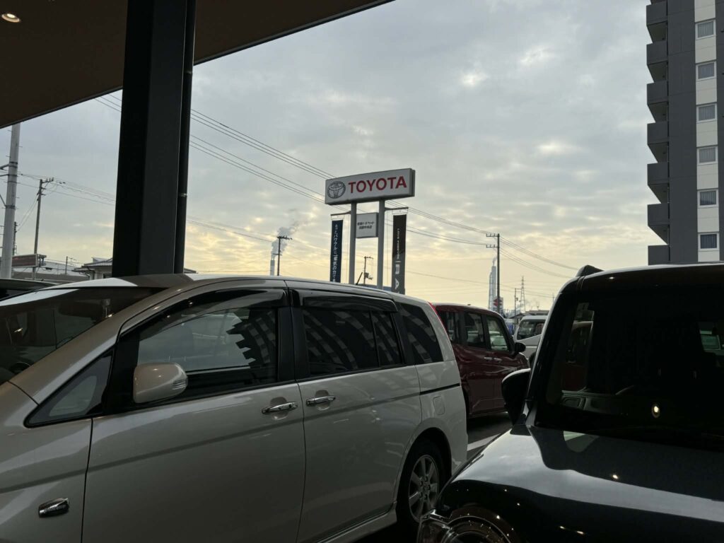 トヨペット愛媛様のピカピカのショールームで、オーナー様へ無事に鍵をお返しした瞬間。
