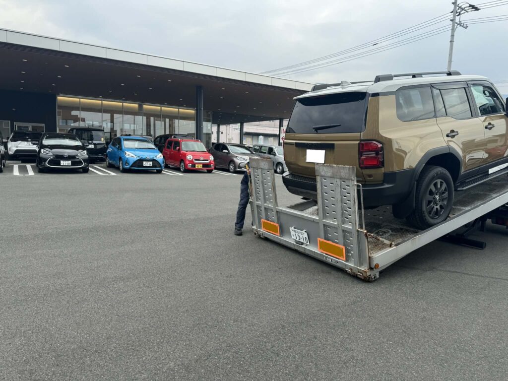 今回は、愛媛のディーラー様へ積載車で直接お伺いしました。